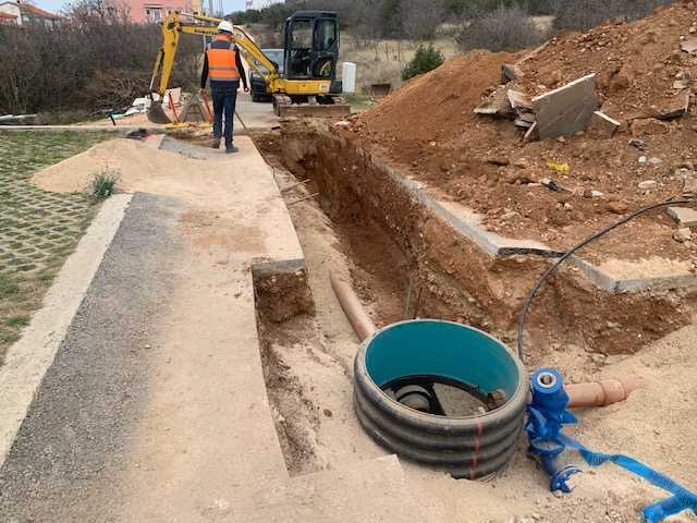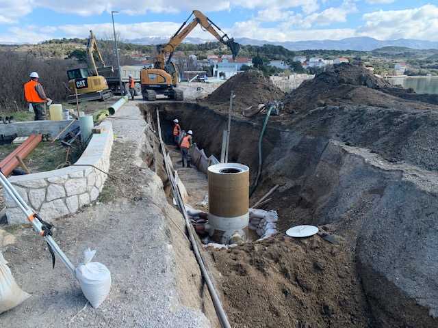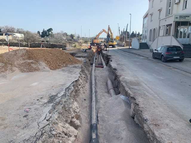 Izvode se radovi na gravitacijskim kolektorima sanitarne odvodnje IV faze naselja Stara Novalja te sanacija oštećenih vodoopskrbnih cjevovoda.